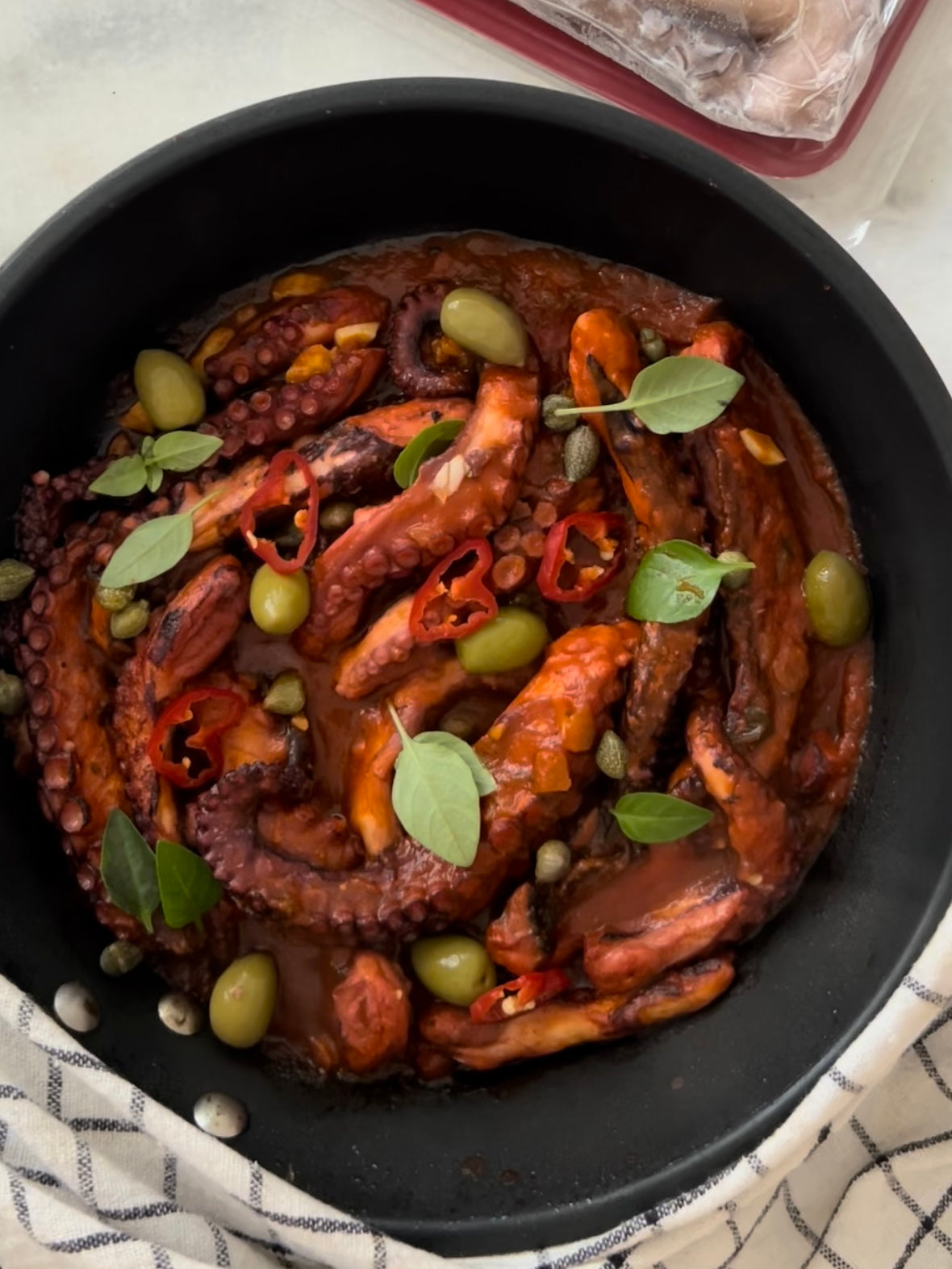 - Esquente azeite em uma frigideira e junte os tentáculos de polvo,