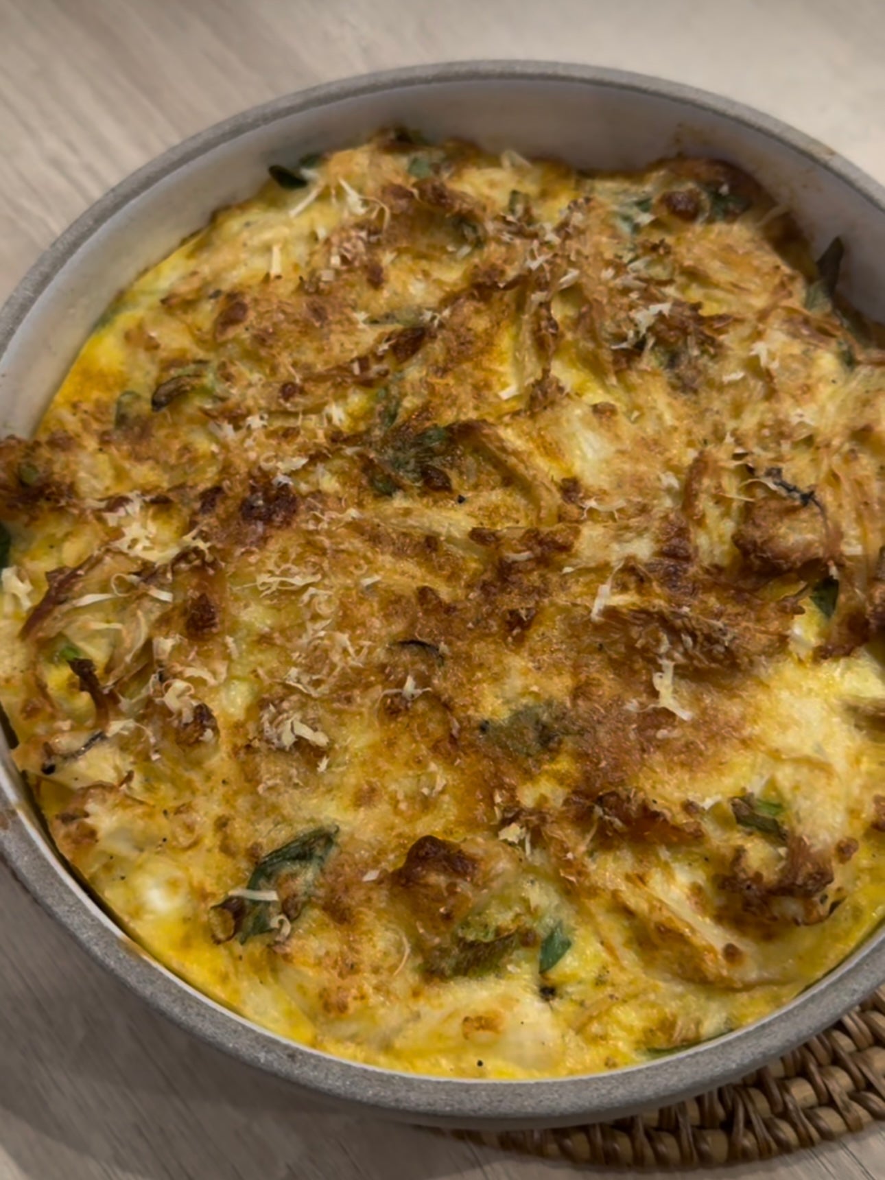 - Unte a forma com azeite e queijo parmesão e leve ao forno preaquecido 180ºC por aproximadamente 30 minutos ou até que esteja cozido.